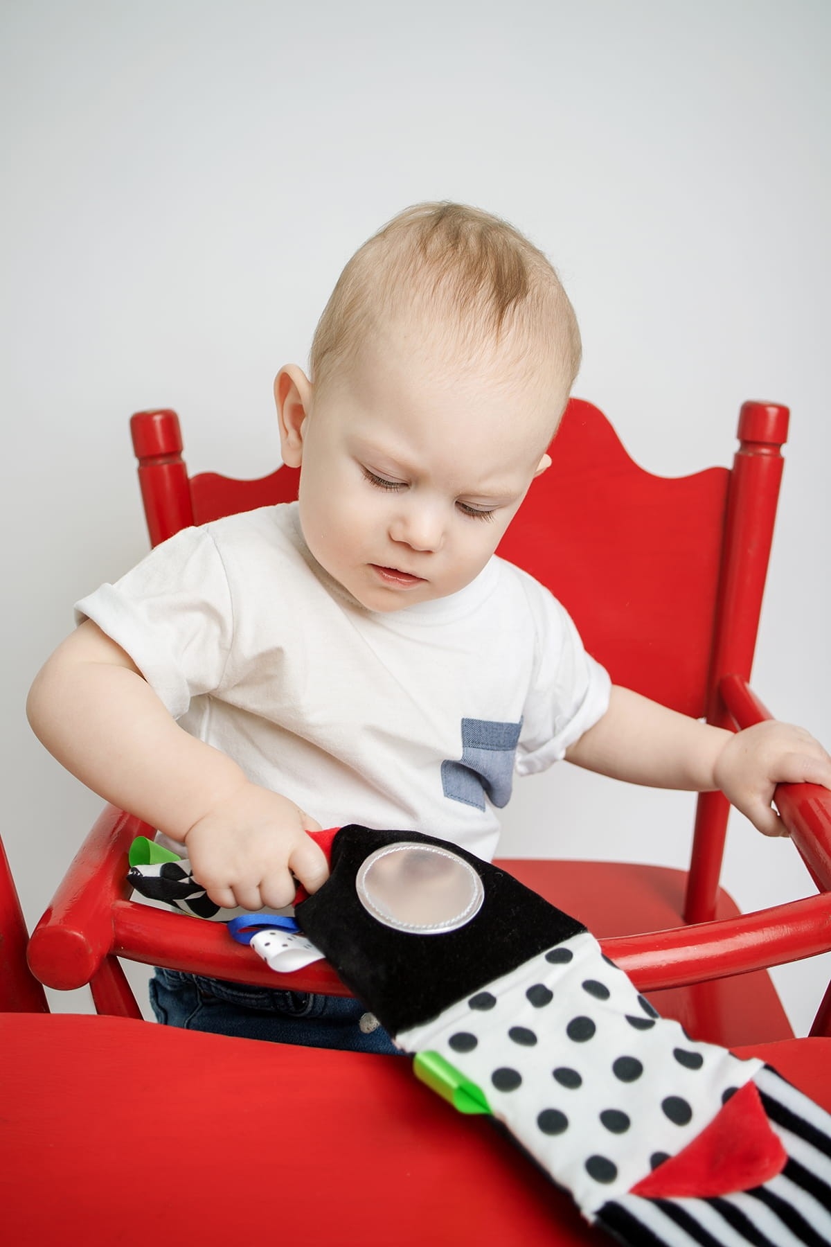 • kontrastní černobílé prvky s doplňující barvou přirozeně upoutají pozornost miminka a pomáhají rozvíjet zrak v prvních měsících života