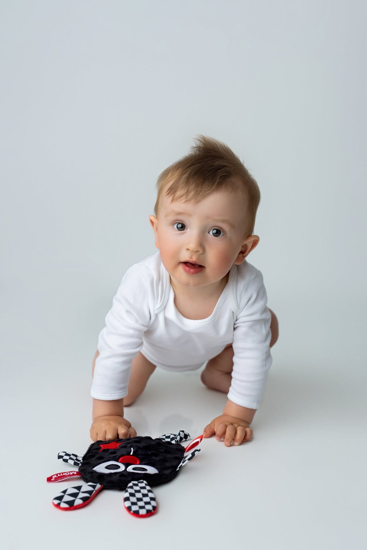 • kontrastní prvky stimulují zrak a barevné cedulky spolu s měkkou Minky látkou povzbuzují ručičky k uchopování a prozkoumávání textur