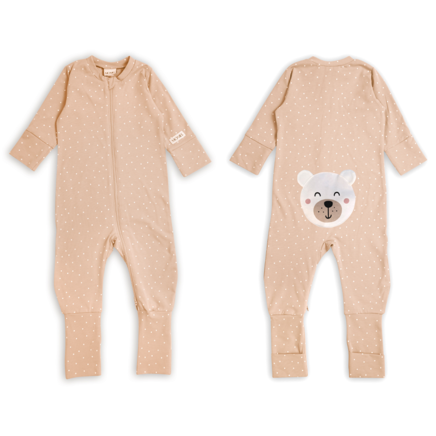 Moniel dětský rostoucí overal Dots Medvěd - Béžová, vel. 62/68