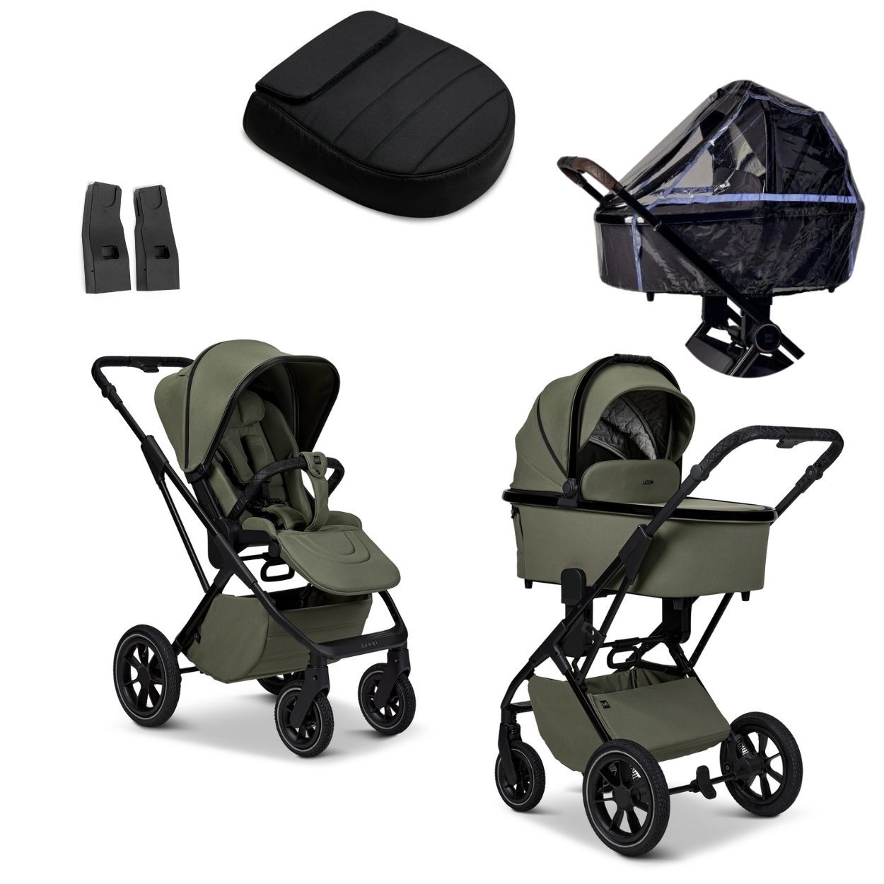 • součástí kočárku je nánožník na sportovní sezení, pláštěnka a adaptéry na autosedačku
