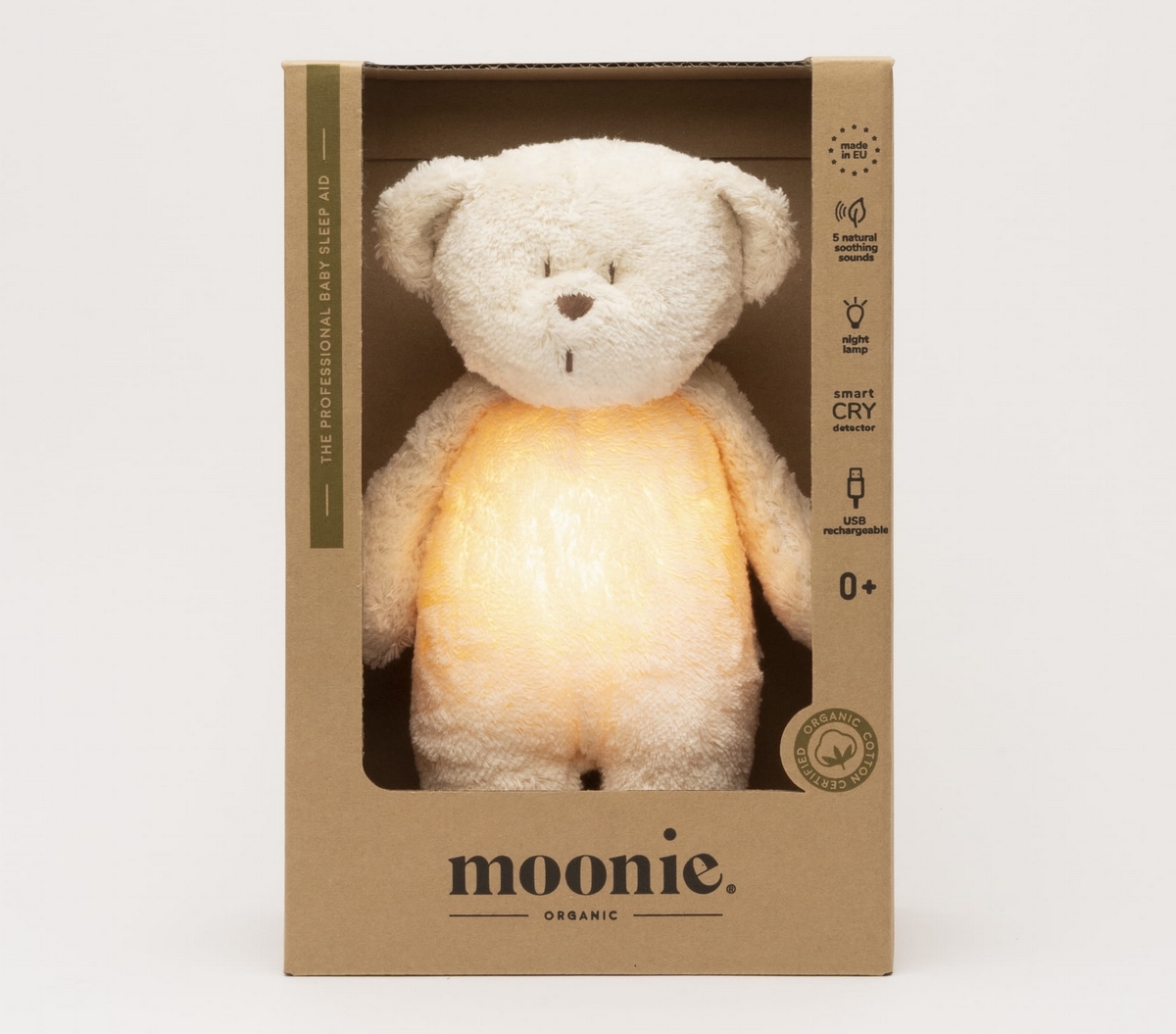 Některé hračky jsou vybaveny nočním světlem a relaxačními zvuky, které pomáhají dětem uklidnit se nebo usnout a mohou se spustit automaticky při pláči . Moonie klade důraz na bezpečnost a kvalitu s certifikovanými materiály, současně s testováním dle evropských bezpečnostních norem. Věříme, že méďa usínáček bude tím nejlepším společníkem právě pro vaše nejmenší.