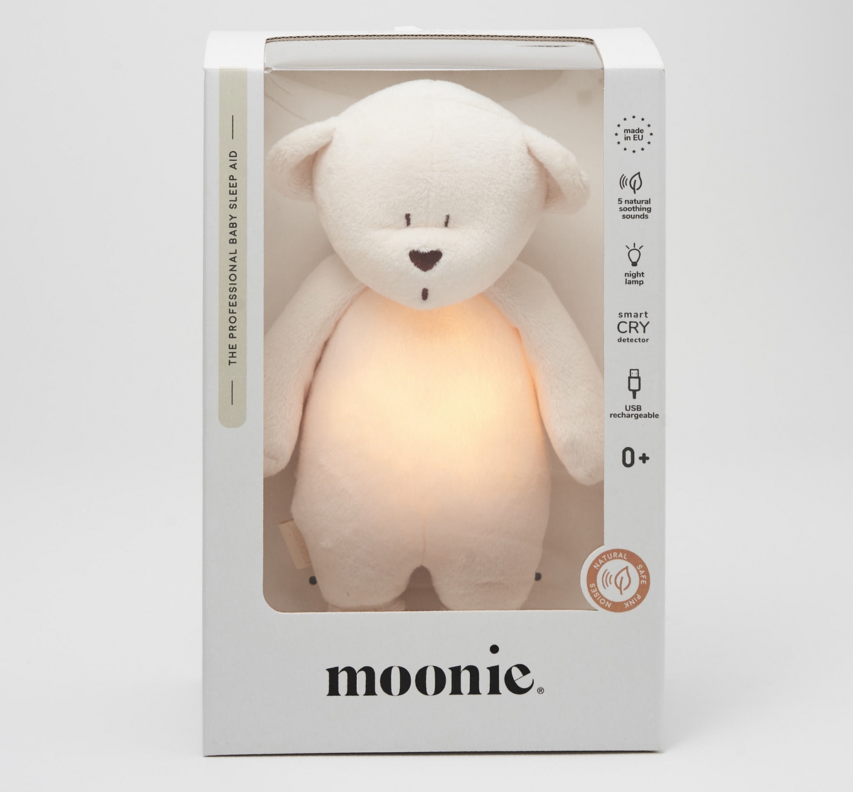 Některé hračky jsou vybaveny nočním světlem a relaxačními zvuky, které pomáhají dětem uklidnit se nebo usnout a mohou se spustit automaticky při pláči . Moonie klade důraz na bezpečnost a kvalitu s certifikovanými materiály, současně s testováním dle evropských bezpečnostních norem. Věříme, že méďa usínáček bude tím nejlepším společníkem právě pro vaše nejmenší.