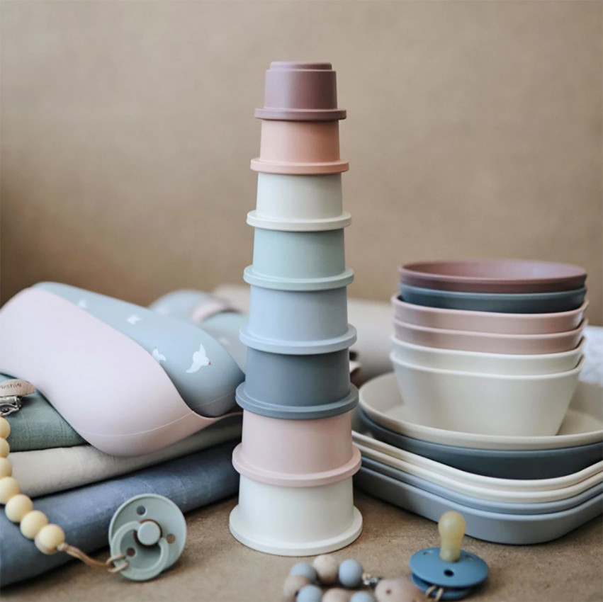 Mushie skládací věž 8 ks - Pastel