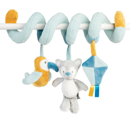 • barevná spirála Nattou je vhodná pro připevnění na dětskou autosedačku, madlo kočárku či k postýlce