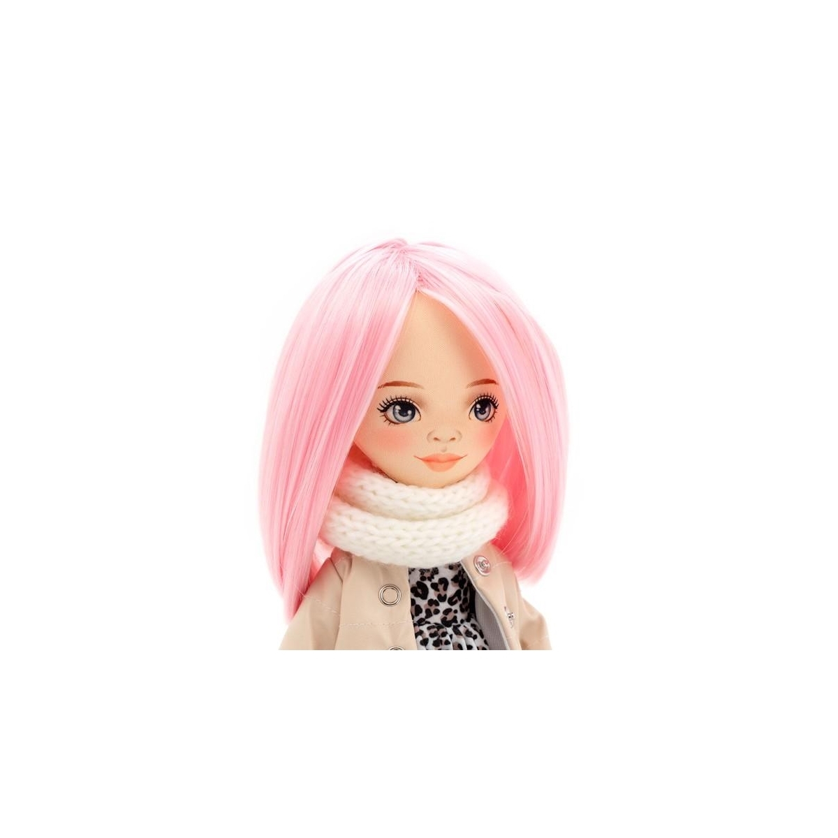 • obličej je natištěný digitální tiskárnou na tkaninu - kvalitní vyobrazení obličeje panenky, odolnost vůči opotřebení