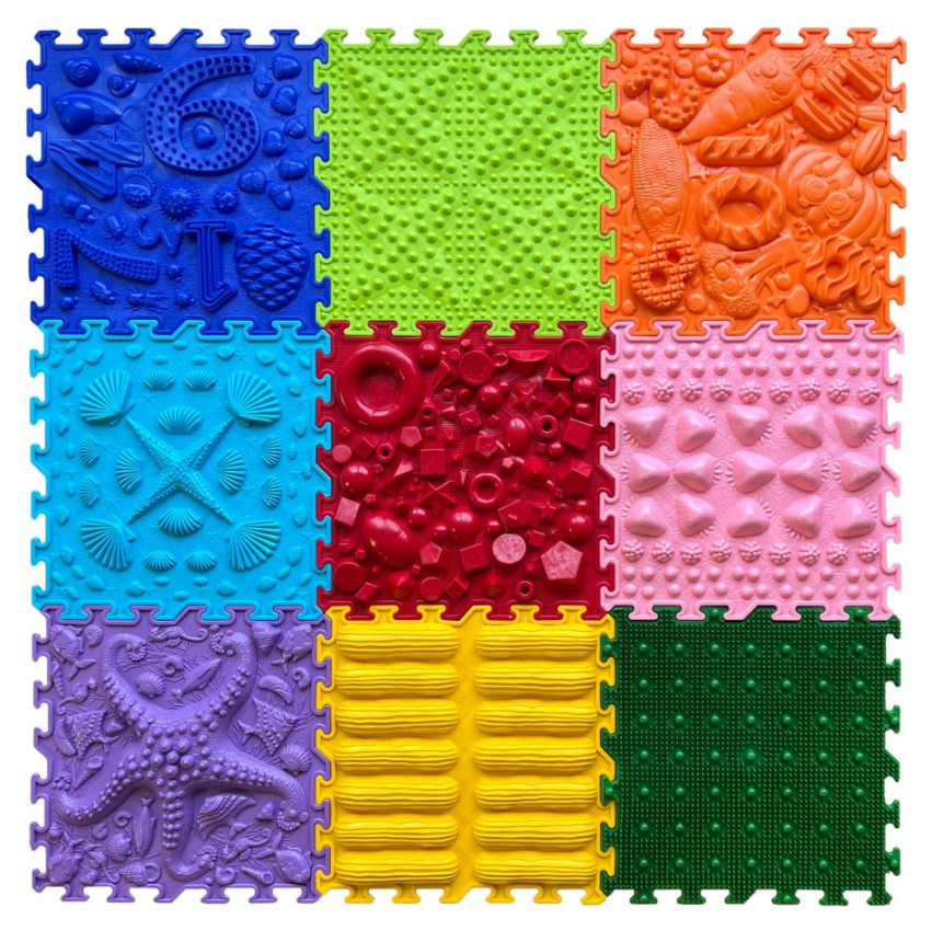 • široká škála textur dokáže napodobit nejrůznější povrchy se kterými se vy i vaše děti můžete setkat venku a pomůže vám v pohodlí domova vytvořit v dnešní době tolik oblíbené "stezky bosou nohou"