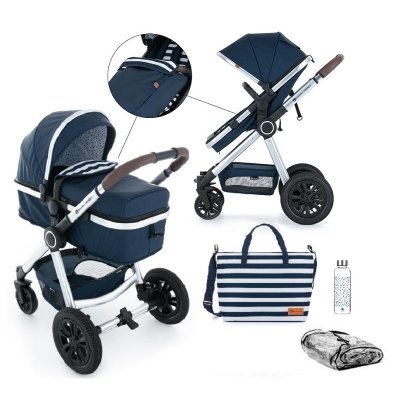 tento set obsahuje podvozek, sportovní sedačku přeměnitelnou na hlubokou korbu, podložku, nánožník, pláštěnku, přebalovací tašku, znovu naplnitelnou láhev na vodu
