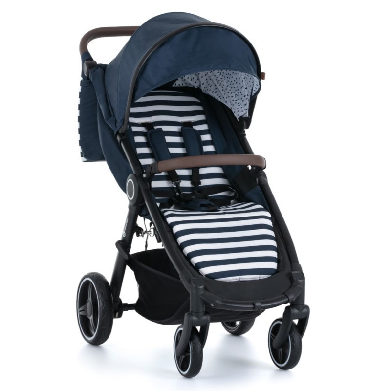 • o bezpečí dítěte se v kočárku postaraji 5bodové měkce polstrované pásy a odnímatelné koženkové madlo před dítětem