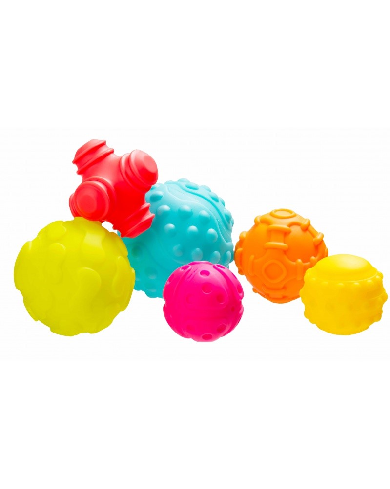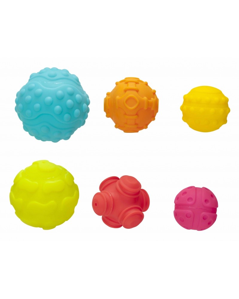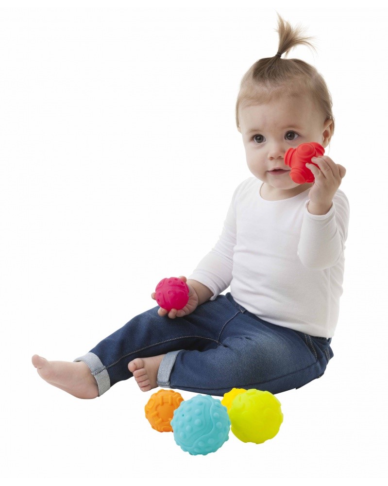 díky různě tvarovaným výstupkům a velikosti míčků rozvíjejí hmat a jemnou motoriku u vašeho dítěte