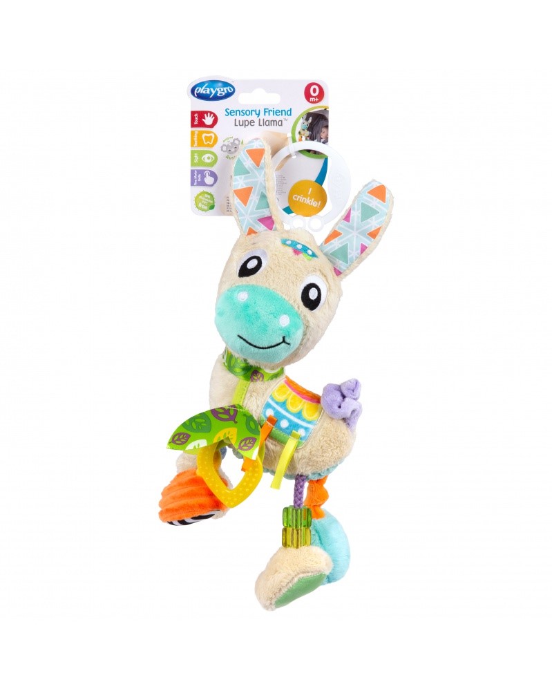 nechte vaše dítě objevit úžasný svět barev, zvuků a textur se závěsným zvířecím kamarádem od začky Playgro