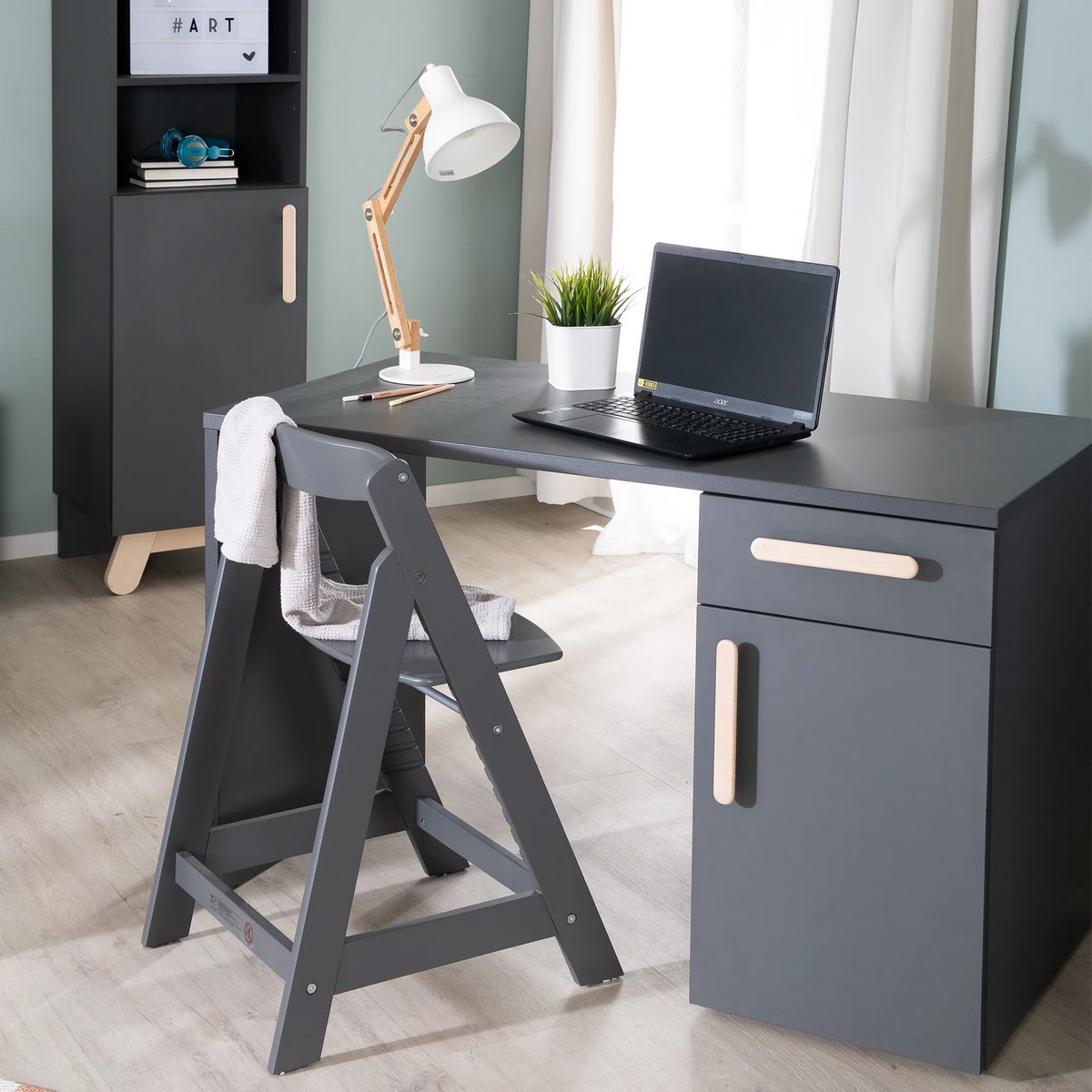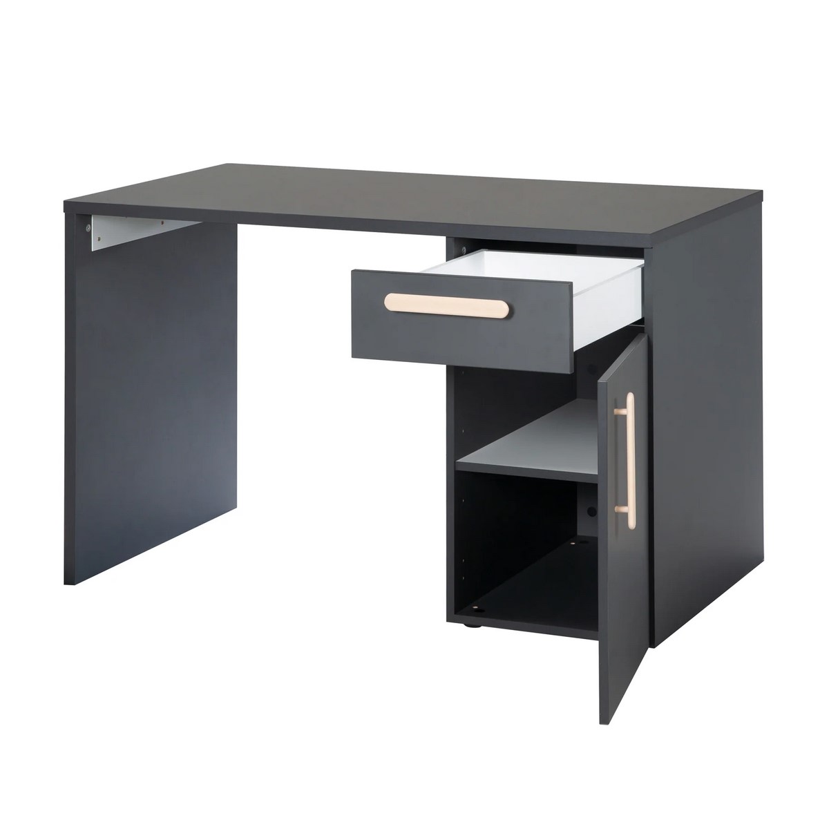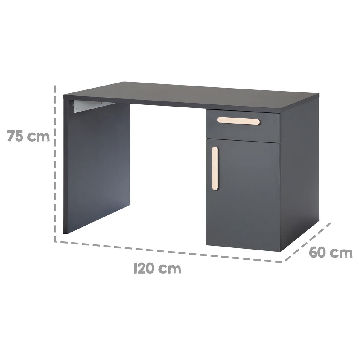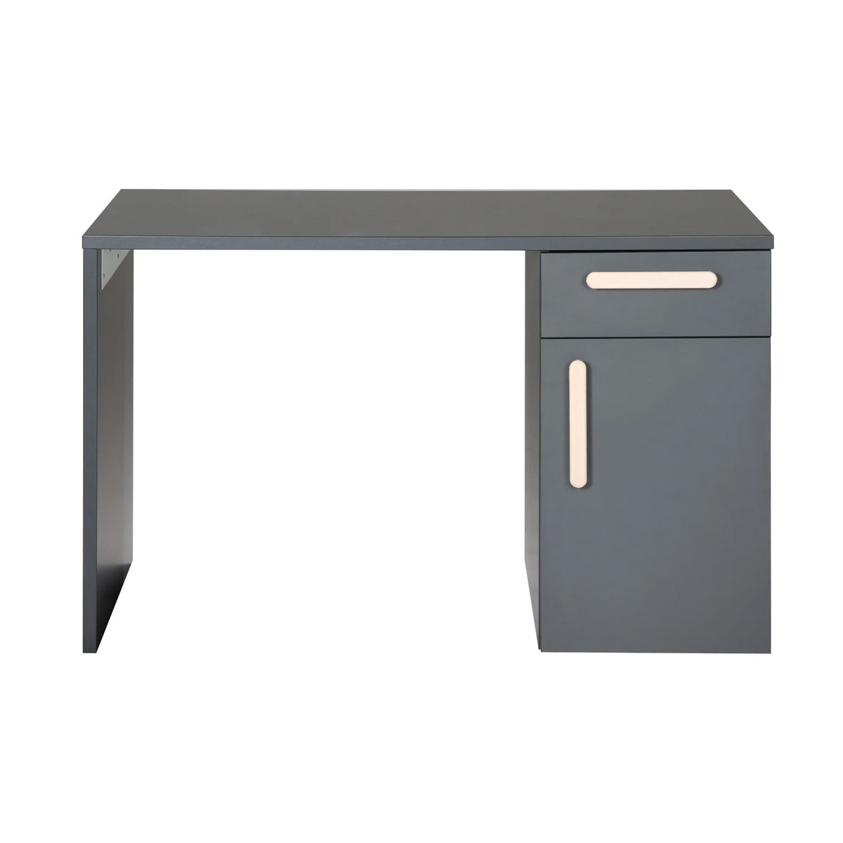 • elegantní šedý psací stůl má 1 dvířka a zásuvku