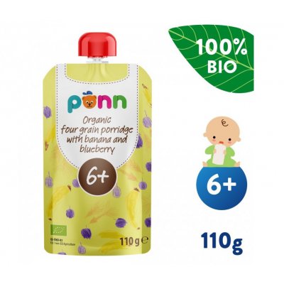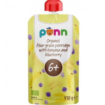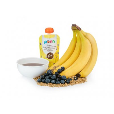 Salvest Ponn BIO ovocné pyré banán s borůvkou a obilnými vločkami v kapsičce pro děti od 6 měsíců