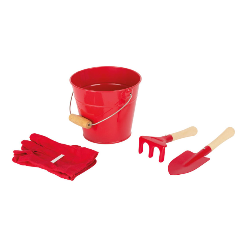Small Foot sada zahradního nářadí s kyblíčkem - Červená