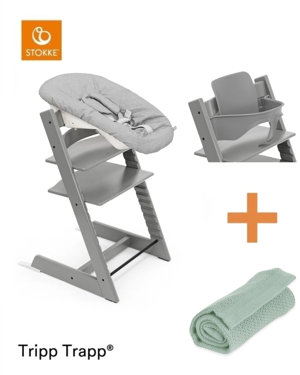 Při nákupu zvýhodněného setu ušetříte 1 499 Kč, což je hodnota Baby setu. Díky tomu získáte Baby set zdarma. Balení obsahuje židličku Stokke Tripp Trapp, Baby set, Newborn set a bavlněnou deku.