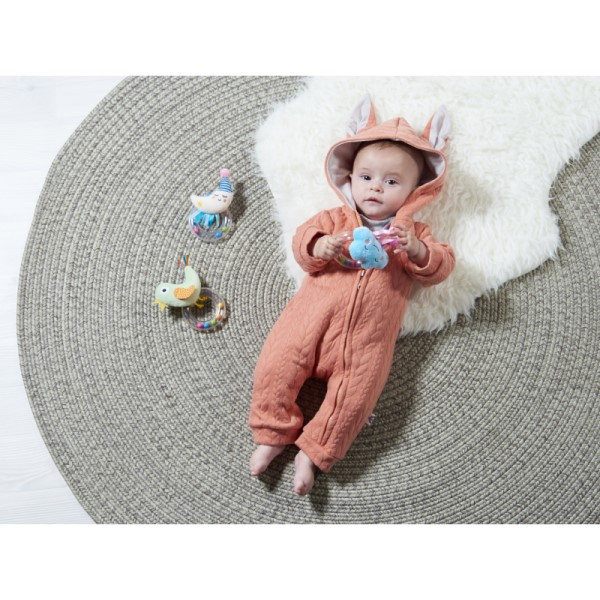 TAF Toys veselé chrastítko je tvořeno měkkou plyšovou hračkou a průhledným kroužkem naplněným barevnými korálky