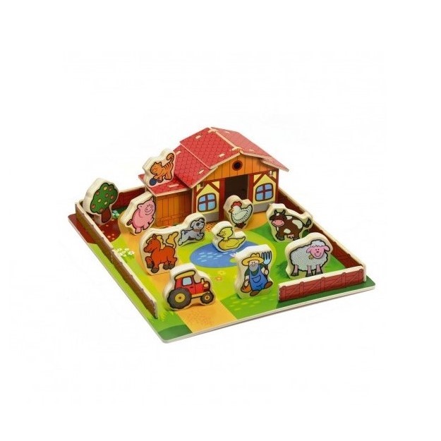 kvalitní, dřevěná farma, se kterou se děti učí poznávat zvířátka, procvičí motoriku a stimulují logické myšlení