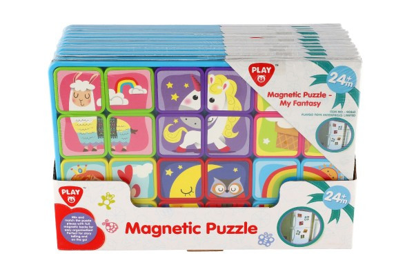 dílky puzzle mají magnetickou zadní stranu, lze je libovolně kombinovat a vytvářet tak různé designy zvířátek