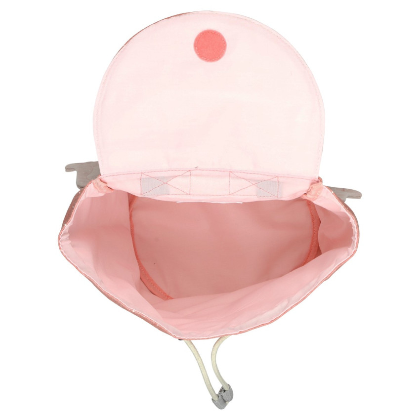 • zavírání batohu je na stažení pevnou šňůrkou a upevnění suchým zipem, díky čemuž se batoh dětem lépe otevírá a zavírá a podporuje je v jejich "nezávislosti"