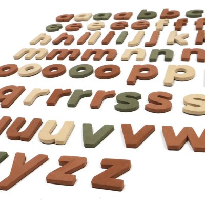 písmena jsou vyrobena z barevné pěny s černým magnetem na zadní straně
