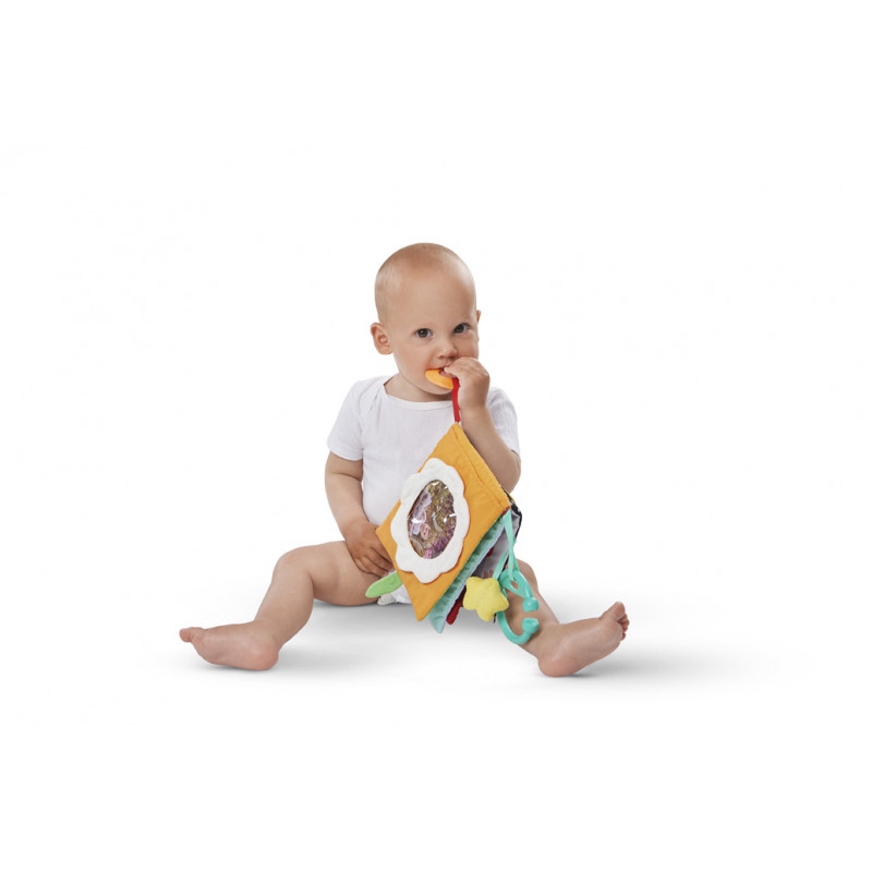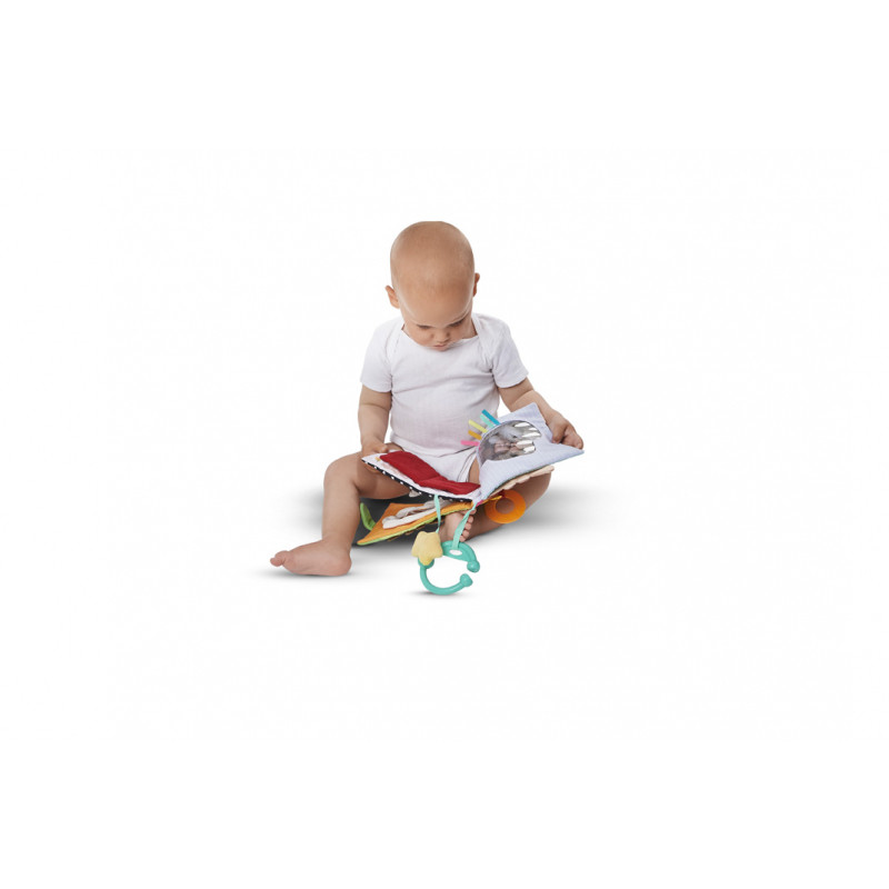 první fotoalbum s rolničkou a kousacím kroužkem je krásně pestrobarevné a má různé textury povrchu