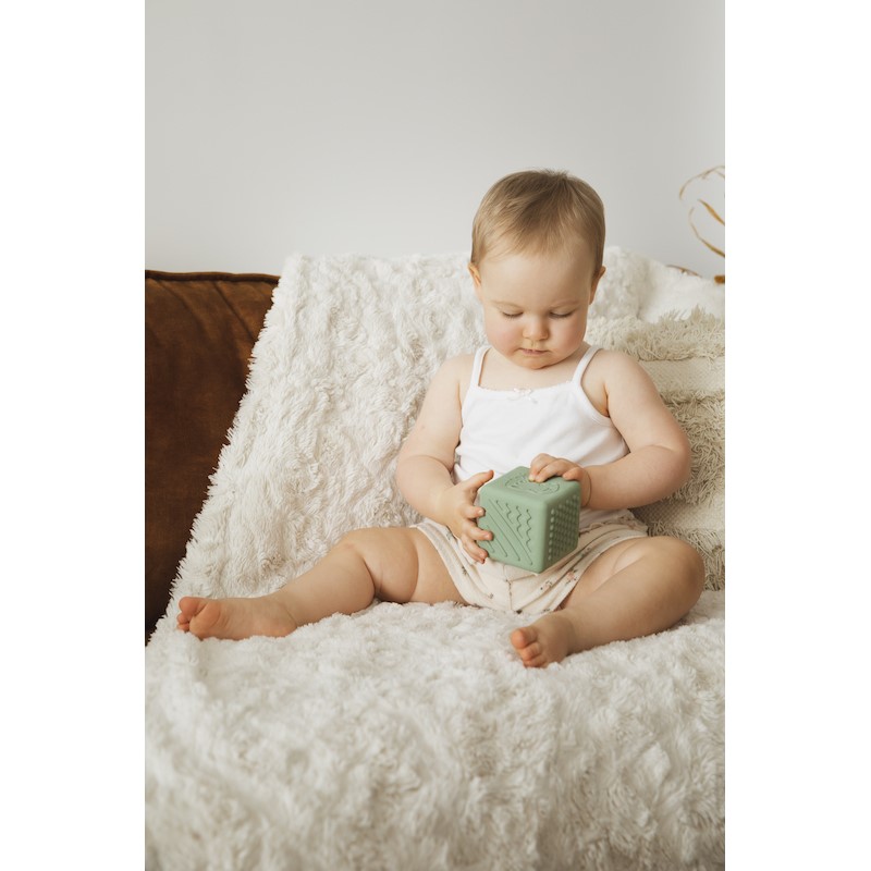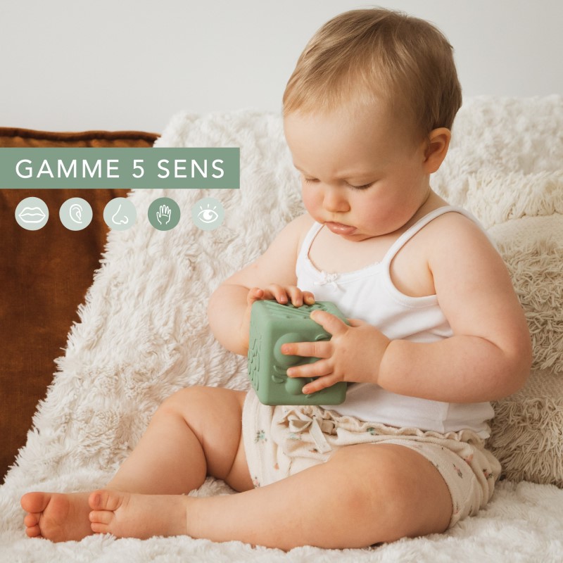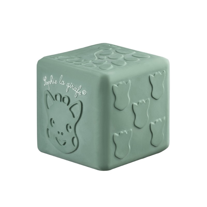 objevování hmatového vnímání prostřednictvím této úžasné kostky v designu žirafy Sophie s mnoha texturami