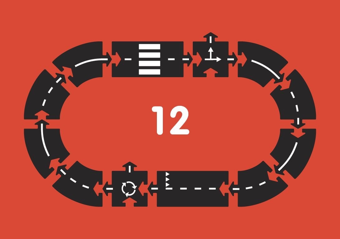 • 8 křivek, 2 rovinky, 1 průnik a 1 kruhový objezd