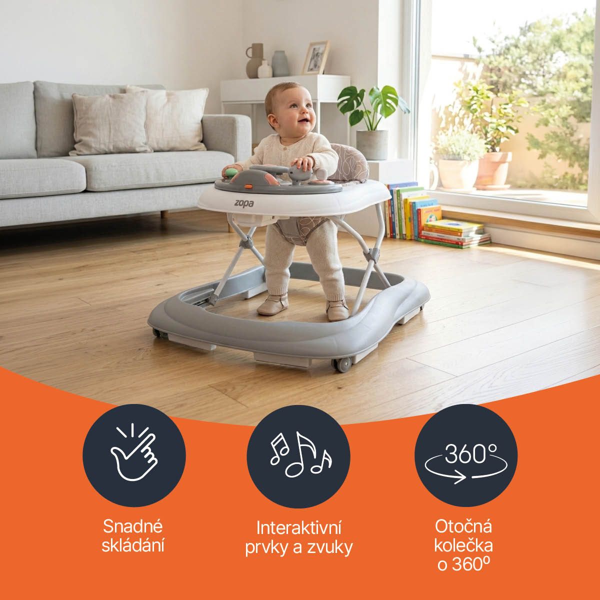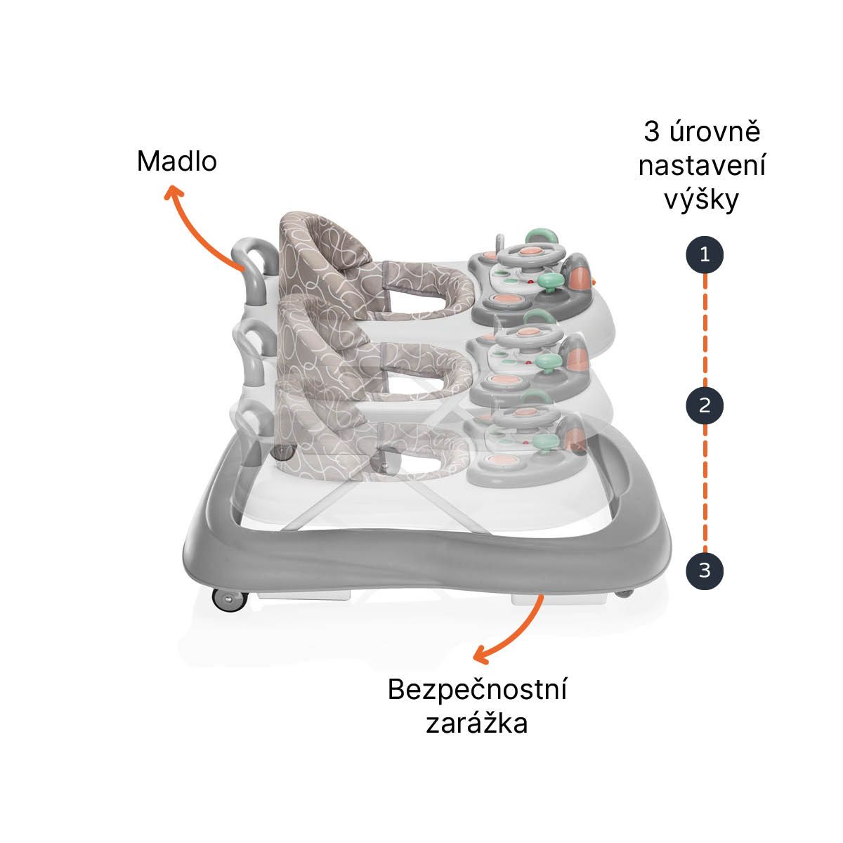 Chodítko je určeno pro děti, které dokáží samy sedět ( od cca 6 měsíců). Není určeno pro děti, které dokáží samy chodit nebo jejichž hmotnost přesahuje 12 kg.