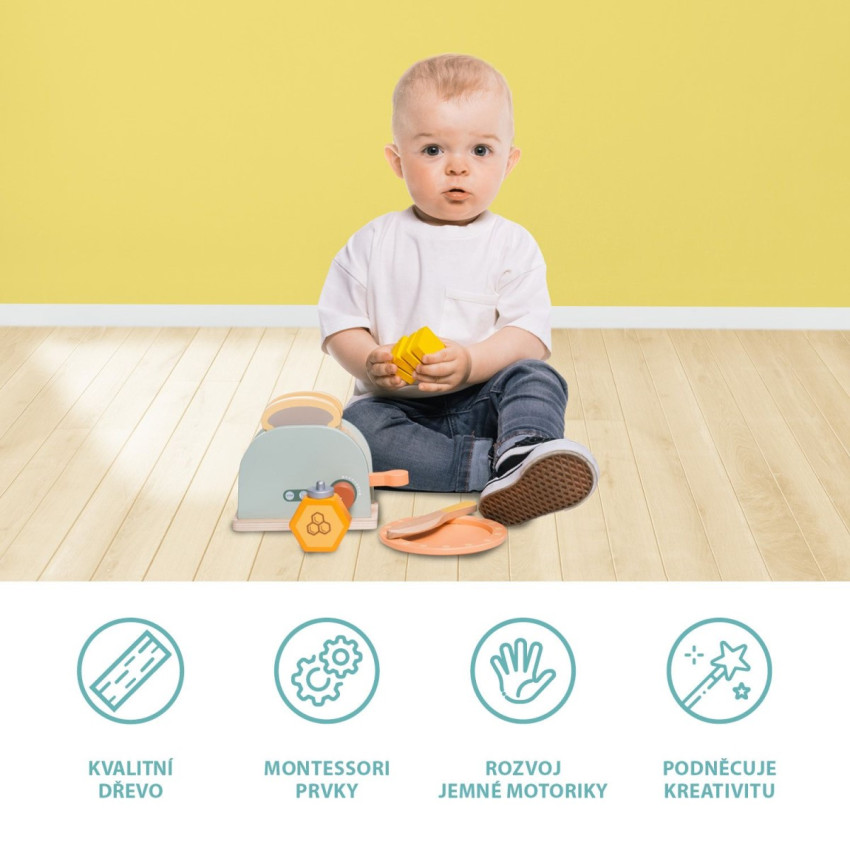 • toaster je vyrobený z kvalitního dřeva a barev na vodní bázi