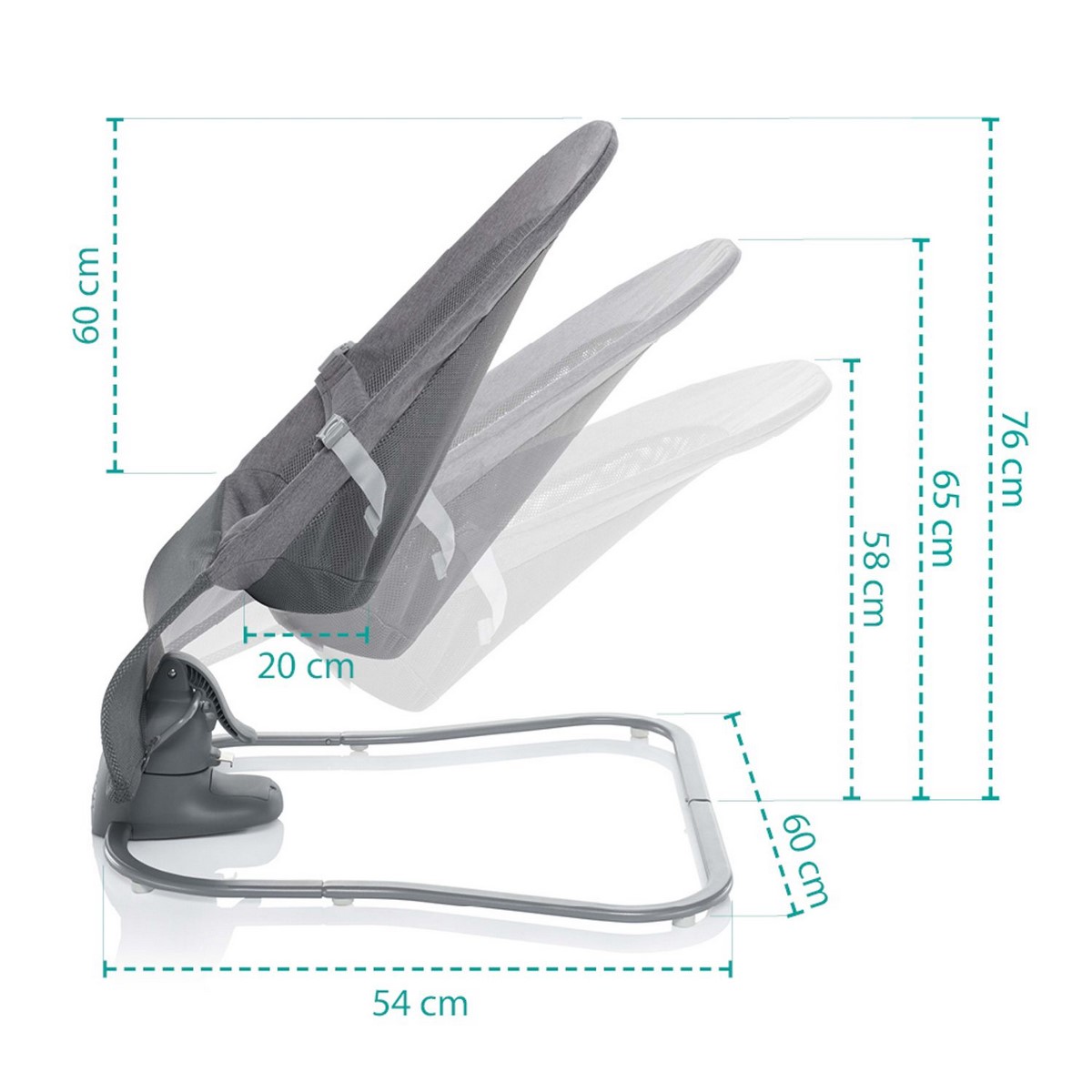 • polohovatelná zádová opěrka nabízí 3 pozice nastavení a snadno ji nastavíte dle aktuálních potřeb miminka