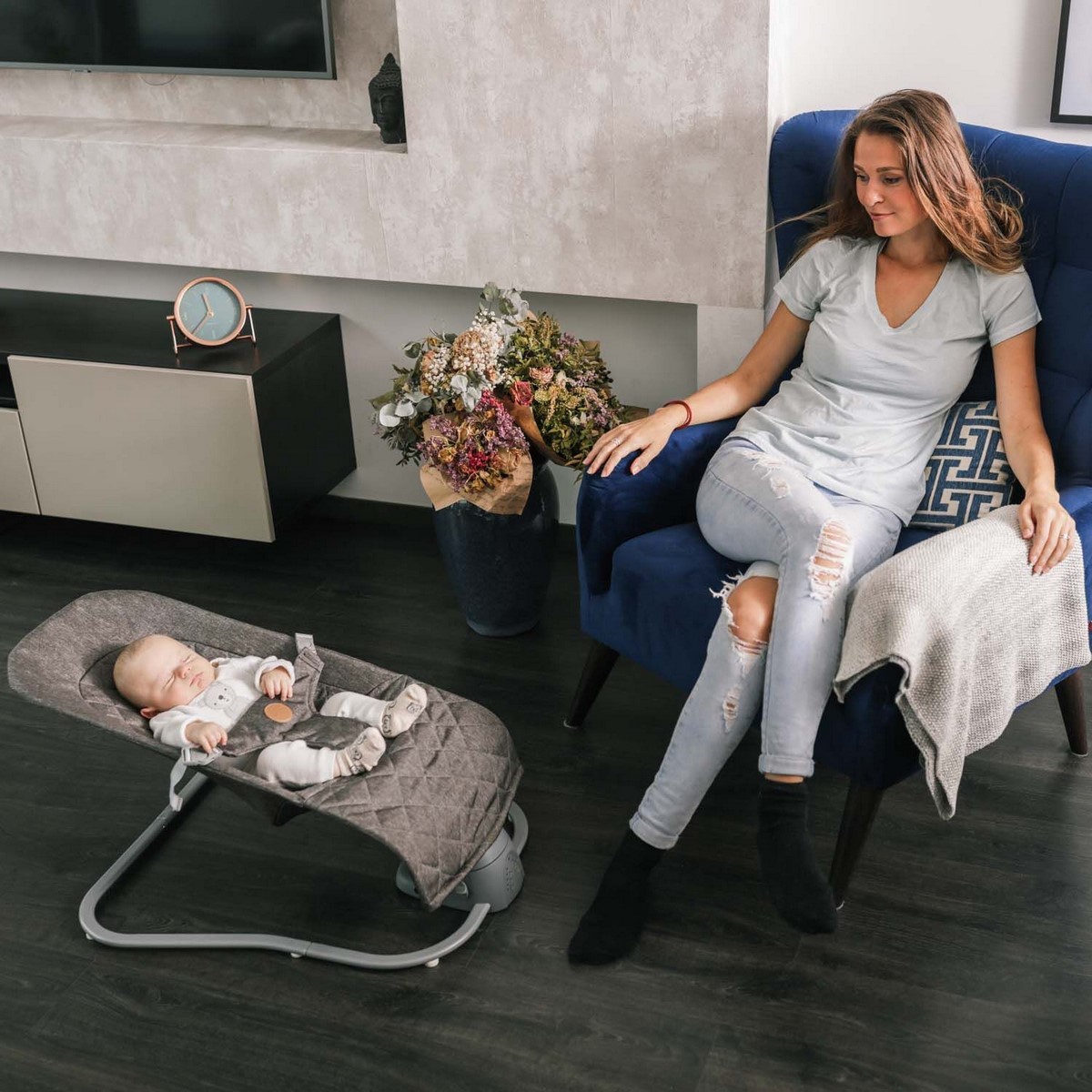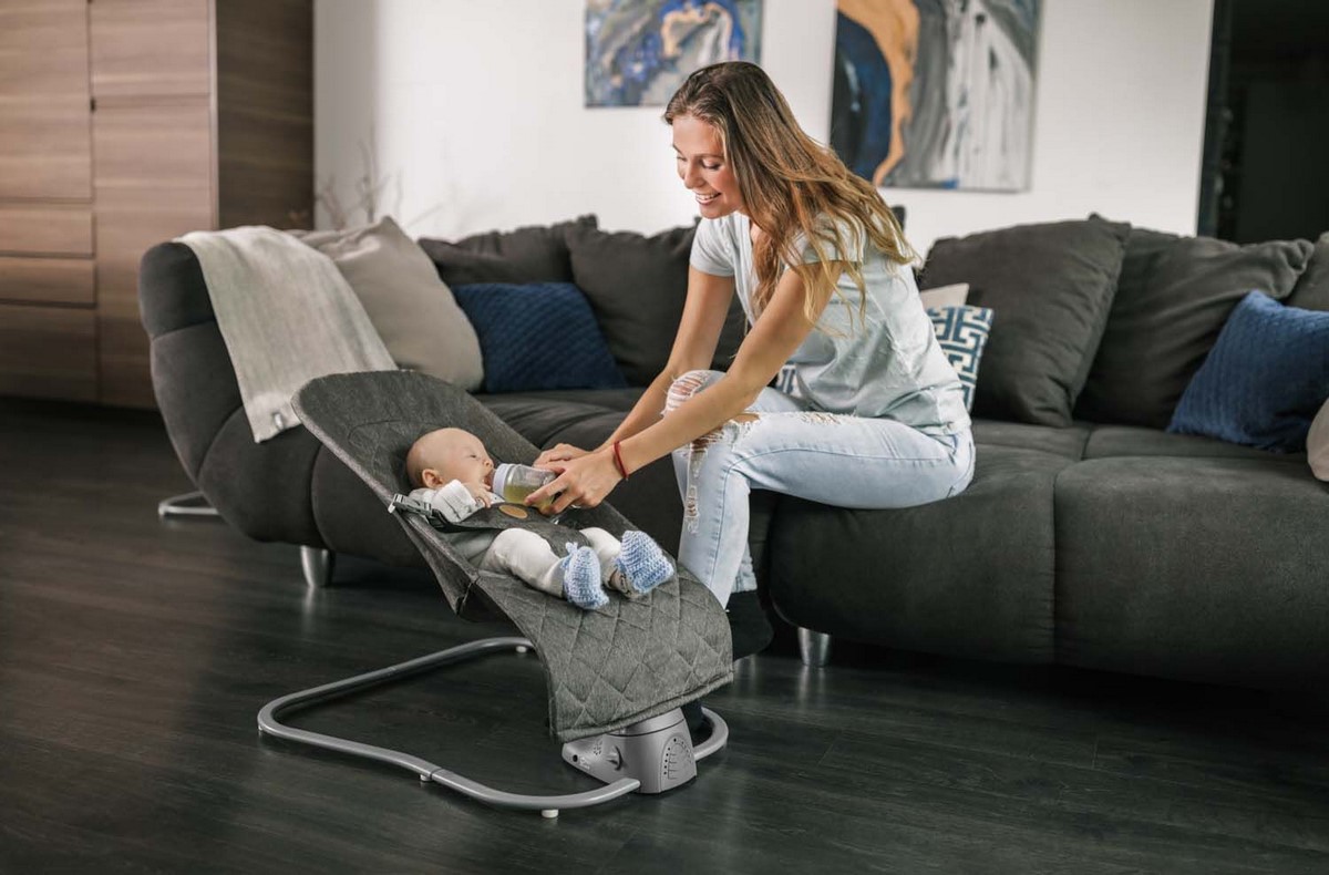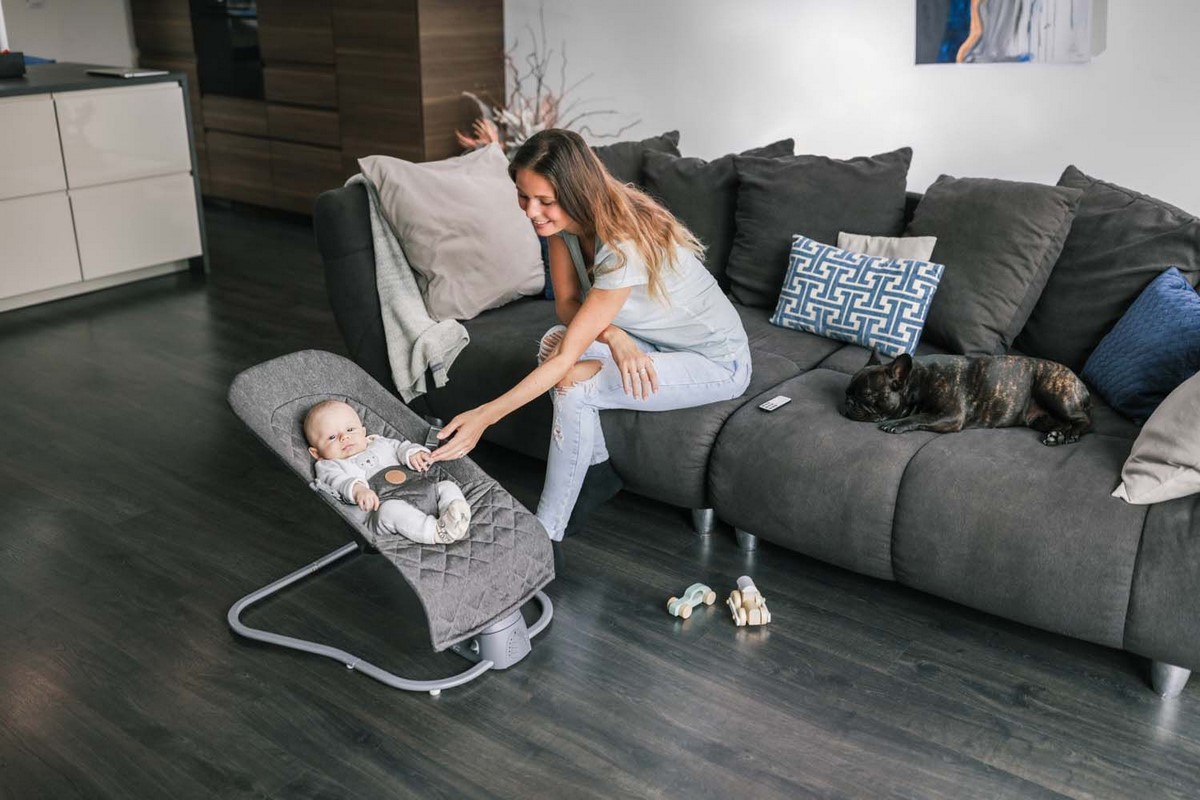 • lehátko se jemně pohupuje na základě hmotnosti miminka nebo pomocí elektropohonu, který lehátkem pohupuje ze strany na stranu