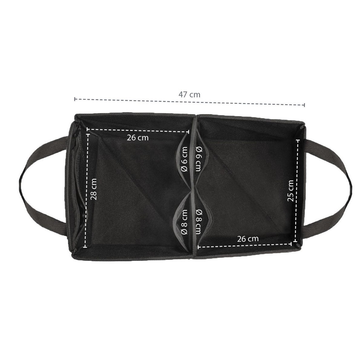 dva úložné prostory poskytují dostatečné místo pro organizované skladovaní věcí