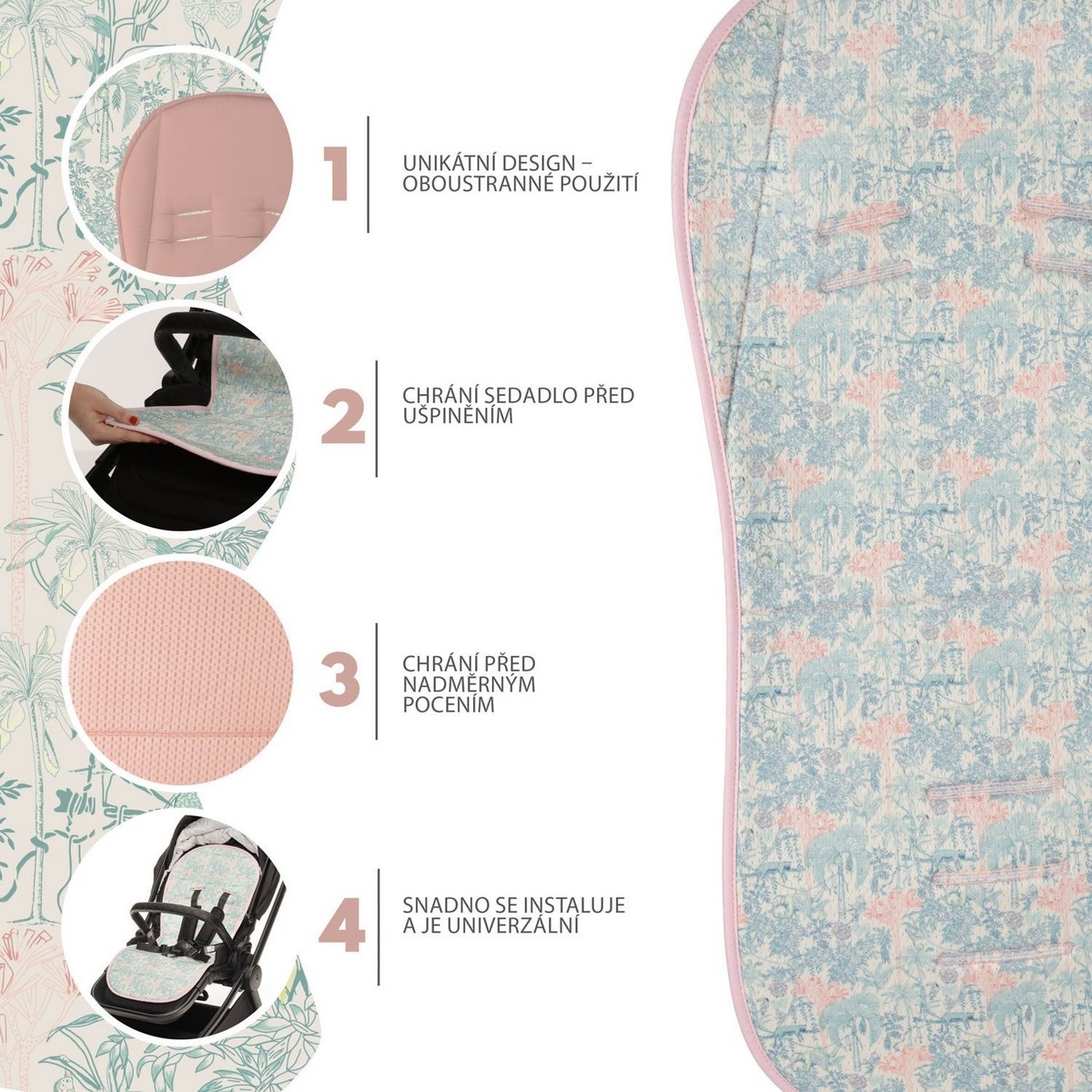 Zopa Vložka do kočárku prodyšná Breeze - Jungle Pink
